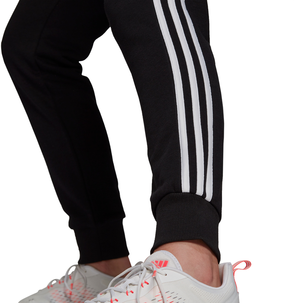 Die 3 Streifen Essential Trainingshose von adidas Performance im schmalem Design eignet sich mit ihrem weichen French-Terry-Material und der bequemen Passform ideal für leichte sportliche Aktivitäten und zum Relaxen in der Freizeit.