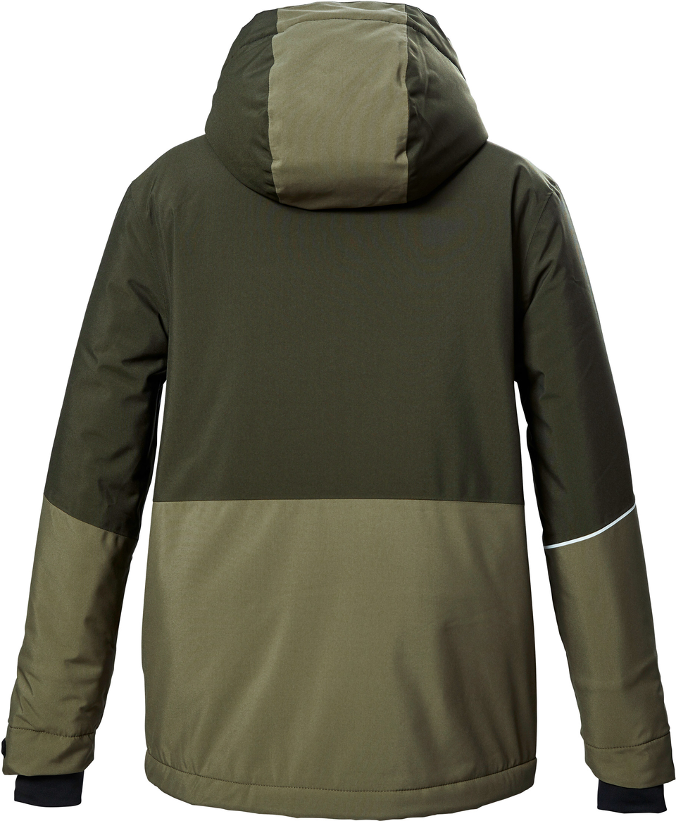 Die Jungen Skijacke von killtec vereint stilvolles Design mit hoher Funktionalität. Das atmungsaktive TPU-Laminat sorgt mit einer Wassersäule von 10.000 mm und einer Wasserdampfdurchlässigkeit von 3.000 g/m²/24 h für optimalen Wetterschutz. Die Nähte sind verschweißt, wodurch die Jacke wasserdicht ist. Die Lycracuffs mit Daumenlöchern und die verstellbaren Ärmelbündchen bieten zusätzlichen Komfort. Die Füllung spendet nicht nur Wärme, sondern ist auch atmungsaktiv. Die Kapuze mit Schirm ist regulierbar und der Kinnschutz am Frontreißverschluss verhindert ein Einklemmen der Haut. Der Saum mit Kordelzug ermöglicht eine individuelle Weitenregulierung. Die Jacke bietet zahlreiche Taschen, darunter eine Innentasche und eine Brusttasche, sowie praktische Seitetaschen und eine Skipasstasche. killtec liegt es besonders am Herzen, die Kollektionen nachhaltiger und zukunftsfähiger zu machen. So setzt killtec verstärkt auf verantwortungsbewusstere Herstellungsverfahren. Diese Jacke wurde daher mit fluorfreien Mitteln imprägniert.