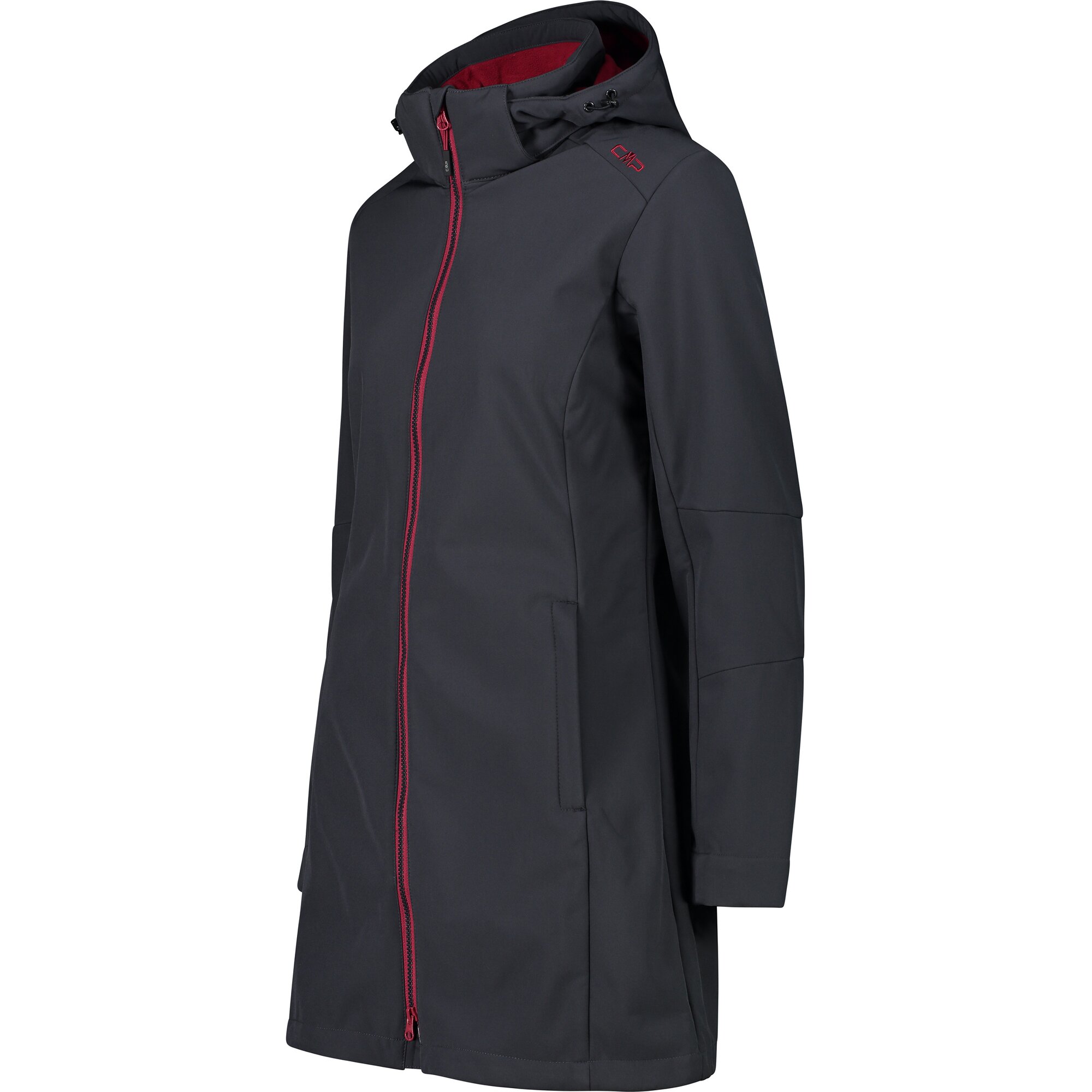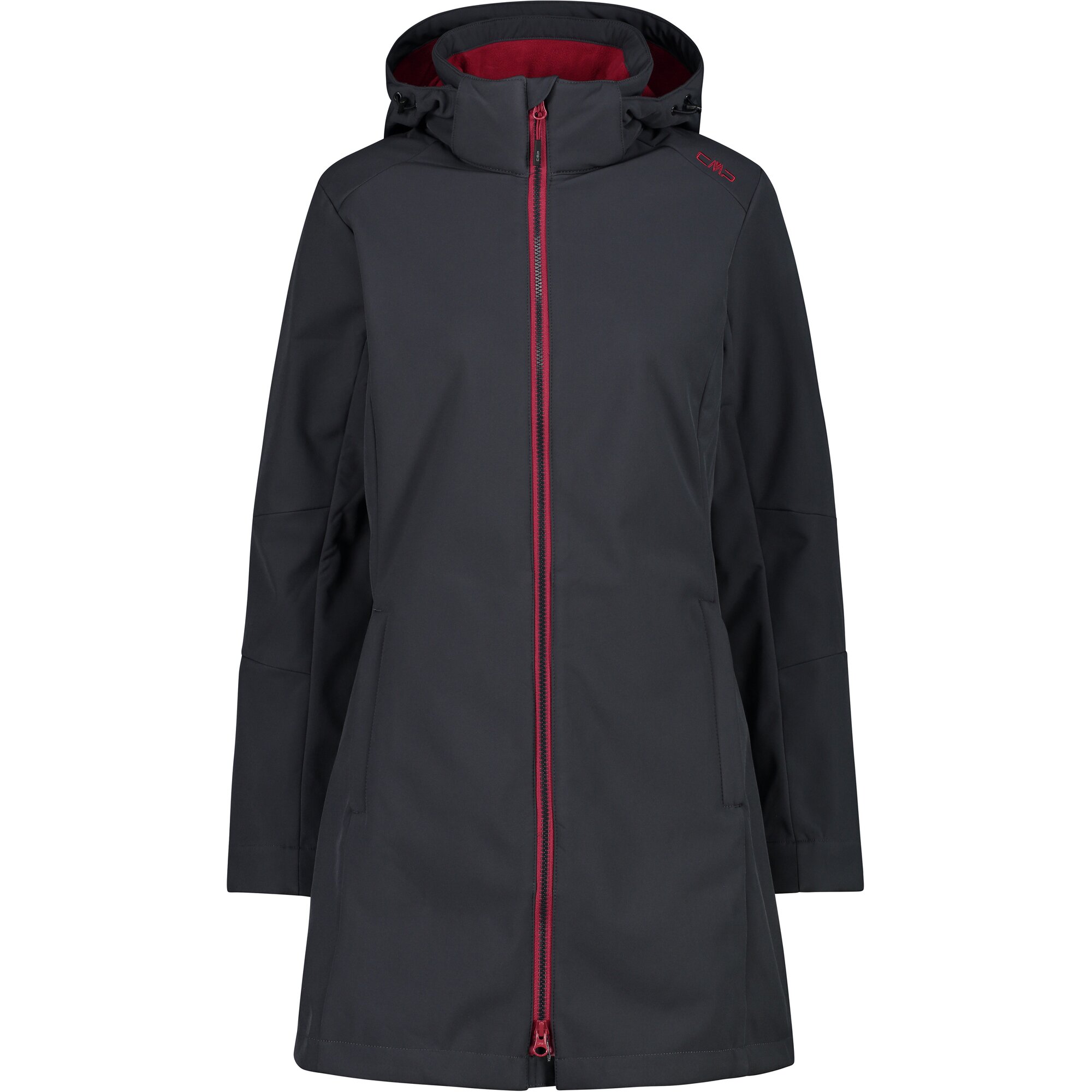 Die knielange Version der ikonischen Softshelljacke von CMP ist mit allen Eigenschaften ausgestattet, die man sich für Outdoor-Aktivitäten nur wünschen kann. Dank der besonderen dreilagigen Struktur des Gewebes und dem mikroporösen Thermolaminat 'Clima Protect' ist sie wind- und wasserdicht (Waterproof 7000) und atmungsaktiv (MVP 1000). Die Fleeceschicht an der Innenseite verbessert die Wärmeisolierung und macht die Jacke im Kontakt auf der Haut besonders angenehm. Mit drei Taschen, zwei an den Seiten und einer auf Brusthöhe, alle mit Reißverschluss.