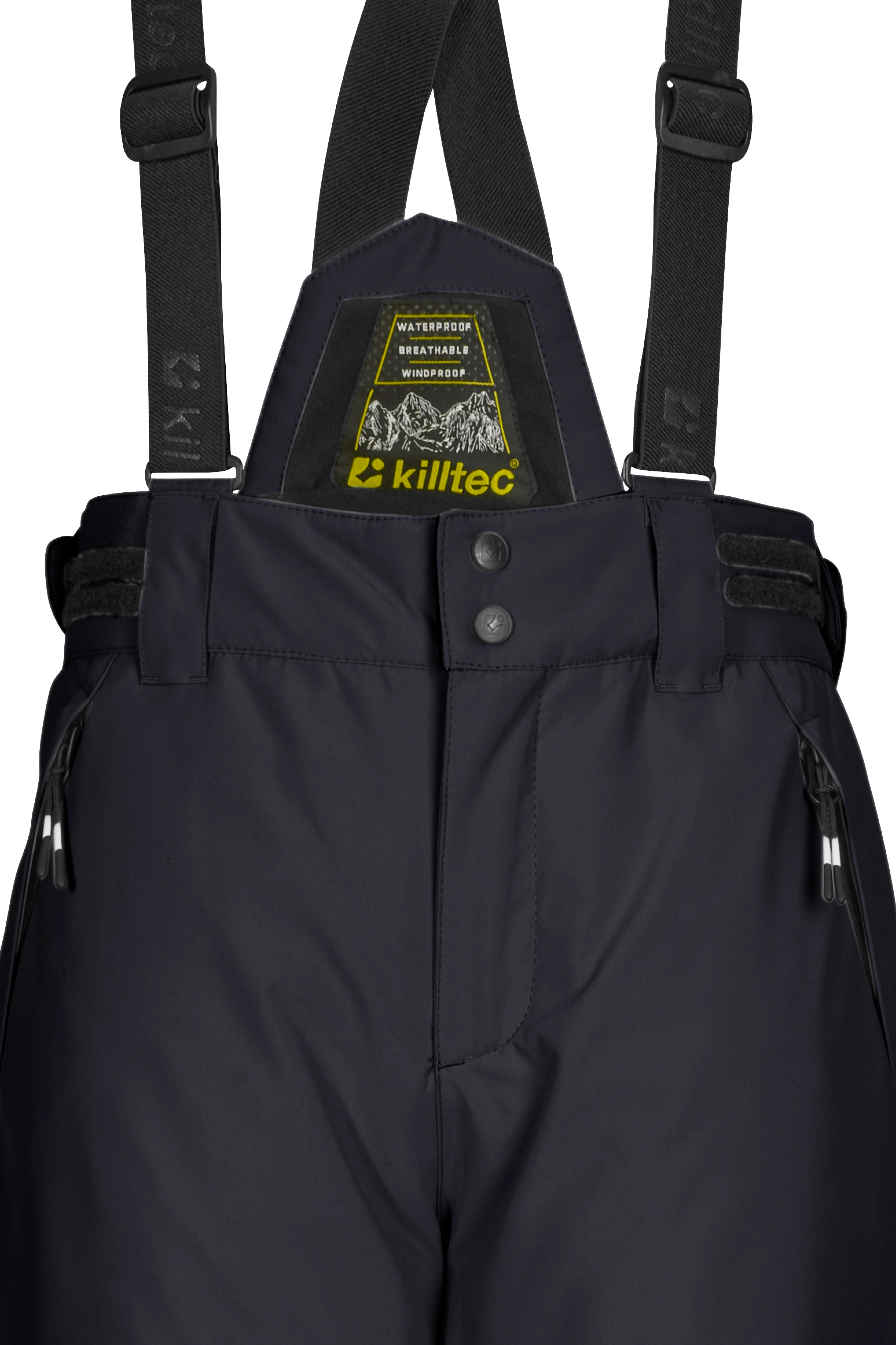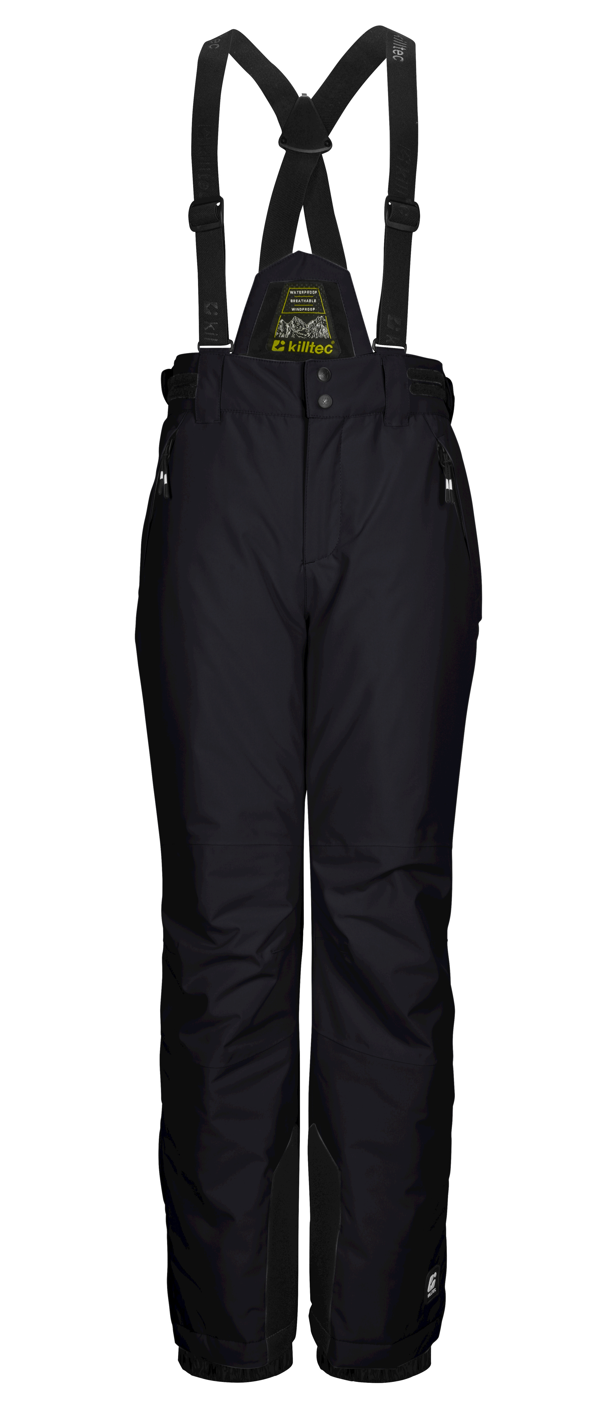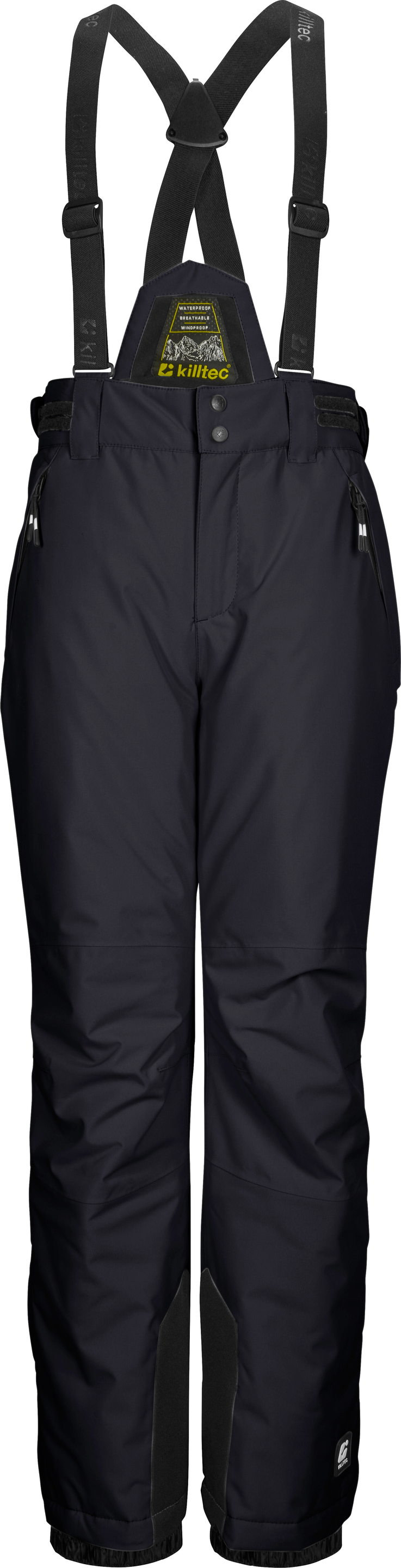 Die killtec Skihose für Kids ist der perfekte Begleiter bei allen Outdooraktivitäten im Winter. Die Hose hat verschweißte Nähte, einen wasserdichten Reißverschluss und ist mit einer Wassersäule von 10.000 mm wasser- und winddicht. Die atmungsaktive Beschichtung sorgt für ein gutes Körperklima. Die Skihose ist mit einem rutschfestem Schneefang und Kantenschutz ausgestattet. Zipper an den Beinabschlüssen erleichtern das An- und Ausziehen. Die Weite der Taille ist durch seitliche Klettverschlüsse verstellbar. Der Latz und die Träger lassen sich bei Bedarf abnehmen. Die beiden Taschen sind verschließbar, sodass nichts verloren geht. Diese Hose wurde PFAs-frei imprägniert.