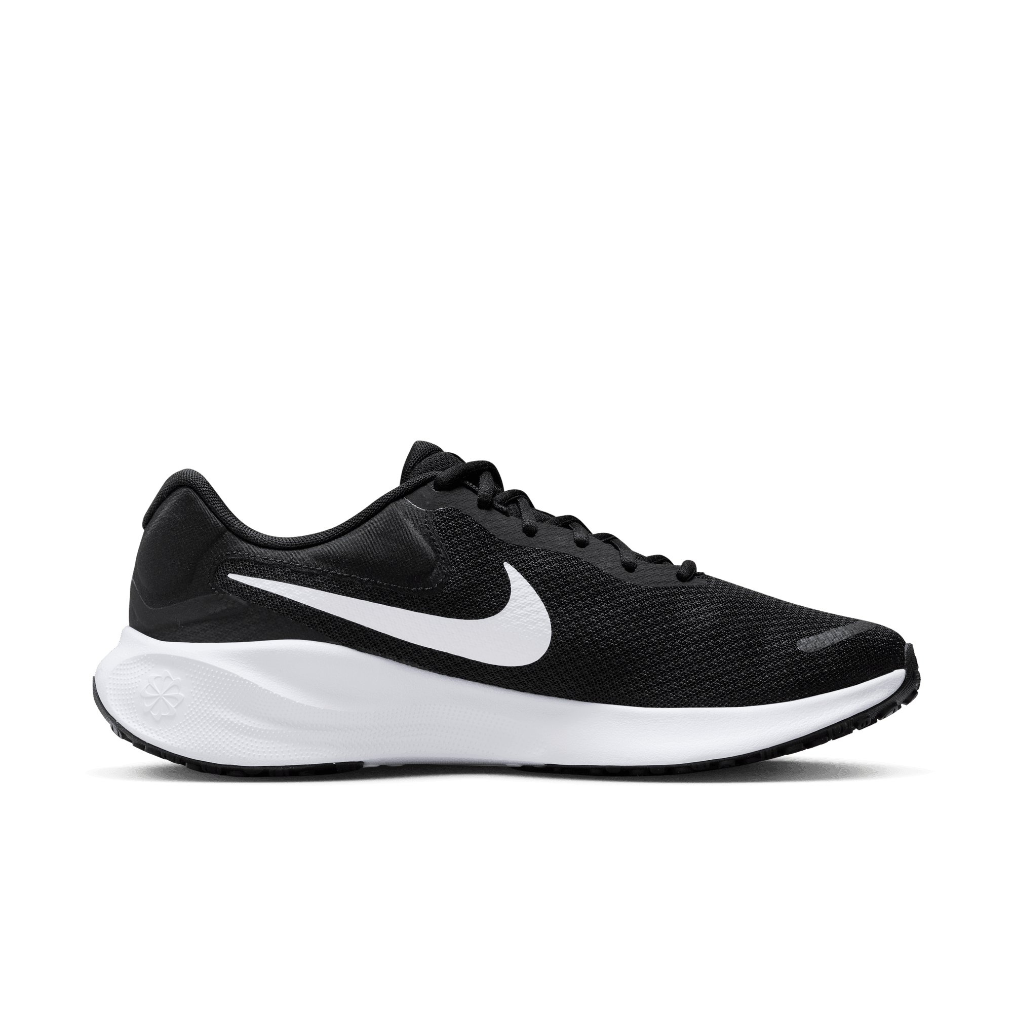 Nike Revolution 7 Men's Road Running Shoes Du sagst, du willst den Revolution 7? Nun, du weißt, dass er mit einer Art weicher Dämpfung und Halt ausgestattet ist, die deine Laufwelt verändern könnten. Stilvoll wie eh und je, bequem, wenn das Gummi auf die Straße trifft und leistungsstark, wenn es um dein gewünschtes Tempo geht, ist er die Evolution eines Fan-Favoriten und sorgt für ein weiches, geschmeidiges, perfektes Laufgefühl. Schaumstoff-Laufgefühl Die Schaumstoff-Mittelsohle sorgt für ein weicheres, geschmeidigeres Laufgefühl als beim Revolution 6. Es gibt auch etwas mehr Platz im Vorfuß, damit sich deine Zehen nicht eingezwängt fühlen. Weiches Tragegefühl Wir haben Puffs an der Ferse hinzugefügt, die an der Außenseite des Schuhs sichtbar und innen um deine Achillessehne unglaublich bequem sind. Sie sind weich und fühlen sich gut an, wenn du die Schuhe anziehst. Die Berührungspunkte an der Zunge sorgen für ein natürliches Tragegefühl beim Abrollen. Zuverlässiger Grip Die Außensohle besticht durch ein generatives Traktionsmuster und die zuverlässigen Gummistollen sorgen für Grip beim Bergauf- oder Bergablaufen.