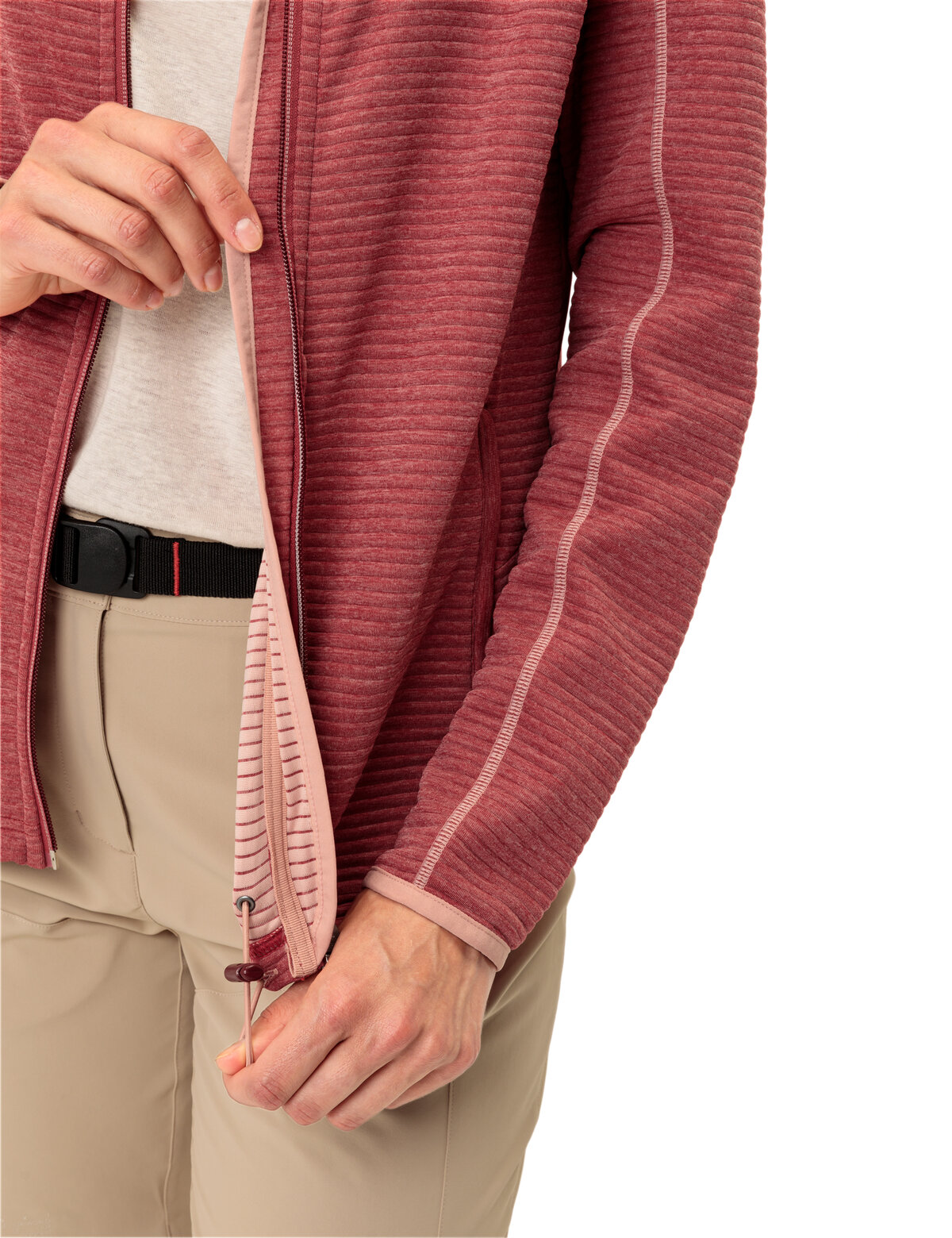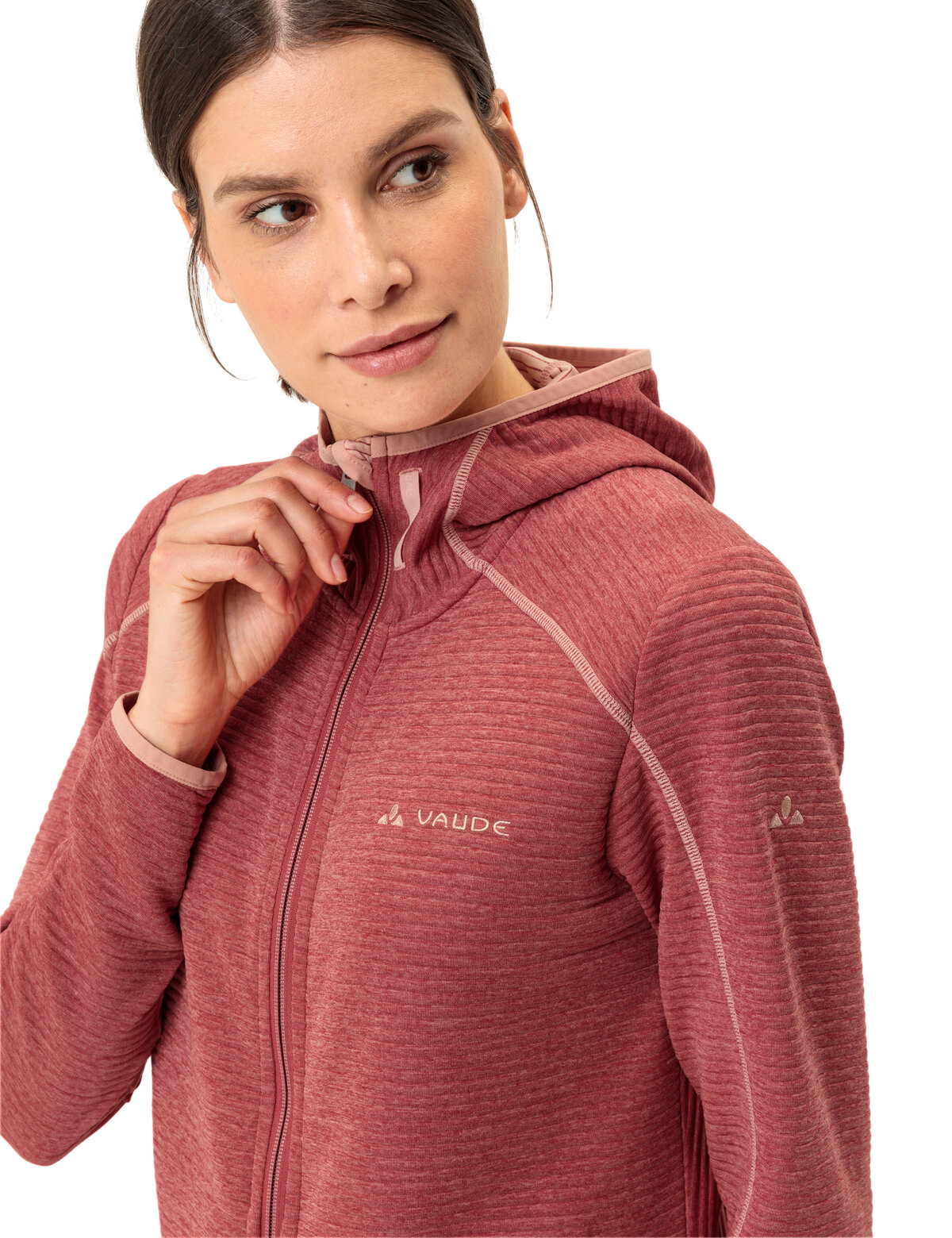 Solo oder als Midlayer getragen, macht die Skomer Hiking Jacket eine Menge her. Das feuchtigkeitsregulierende, angenehm glatte und pflegeleichte Stretch-Material bietet einen hohem Tragekomfort bei mehrtägigen Wandertouren. An windigen Tagen schützen die Kapuze und der abgedeckte Reißverschluss vor Auskühlung. In Kombination mit einer wasserdichten Funktionsjacke ist die Skomer Hiking Jacket der perfekte Midlayer, da sie eine hohe Atmungsaktivität aufweist und bei schweißtreibenden Aktivitäten Feuchtigkeit rasch nach außen transportiert. Das VAUDE Green Shape-Label steht für ein umweltfreundliches, funktionelles Produkt aus nachhaltigen und bluesign® zertifizierten Materialien.