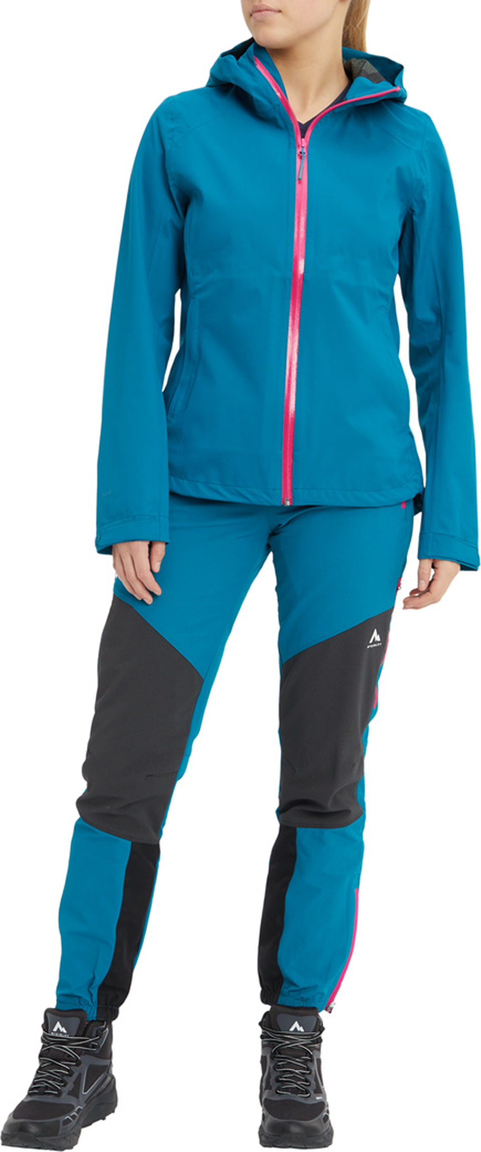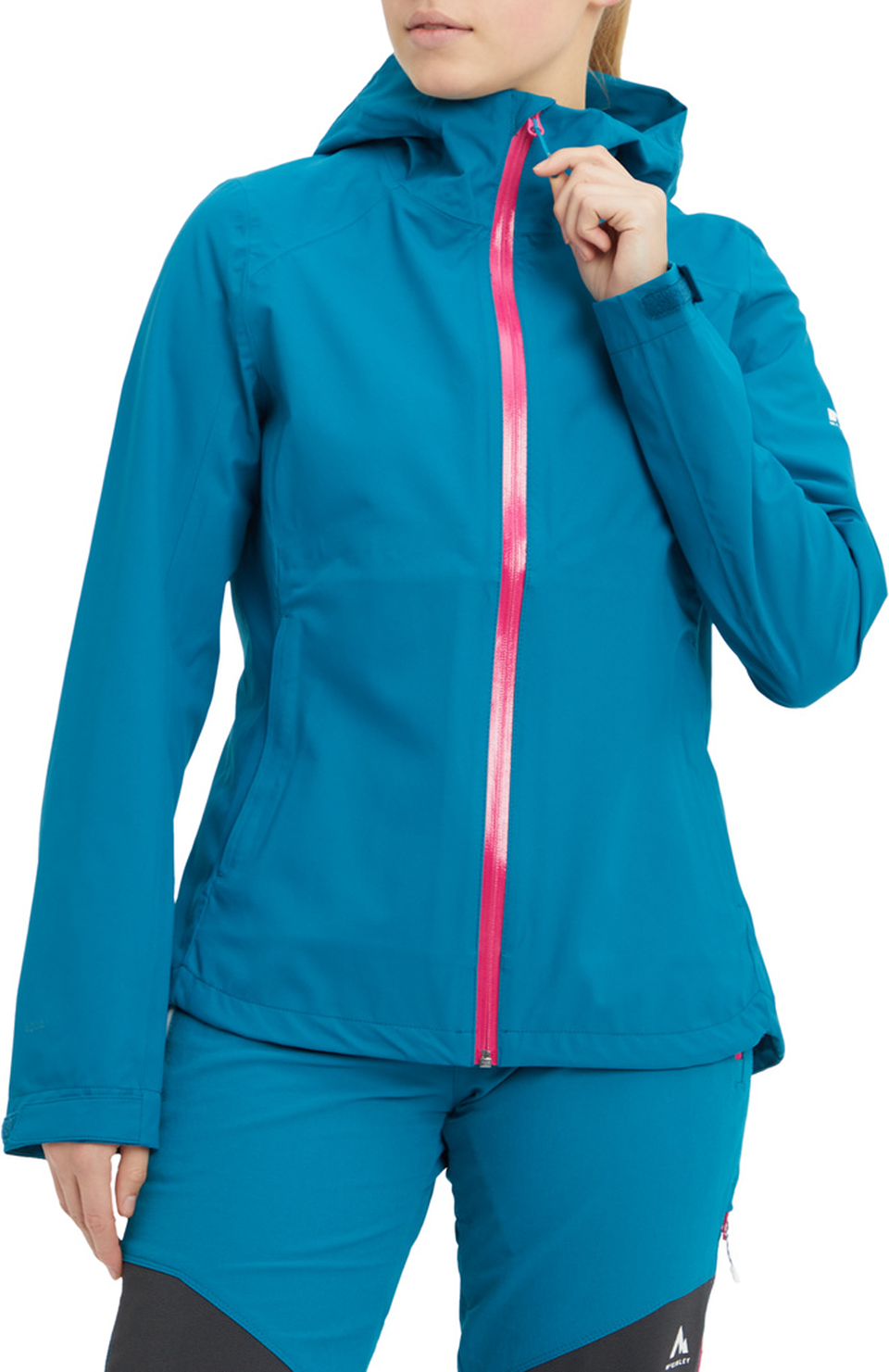 McKINLEYs 2,5-lagige Outdoorjacke Honda für Damen verfügt über eine fixierte Kapuze mit 3-Punkt-Verstellung, vorgeformte Ellbogen und PFC-freie AQUAMAX Technologie, die dafür sorgt, dass du beim Wandern und Bergsteigen angenehm trocken bleibst. Die Jacke bietet dafür vollständig versiegelte, ergonomische Nähte, wasserdichte Reißverschlüsse und ist dauerhaft wasserabweisend bis zu einer Wassersäule von 10.000 mm. Dank mechanischem Stretch im Material ist dennoch ein hohes Maß an Flexibilität und Bewegungsfreiheit geboten.