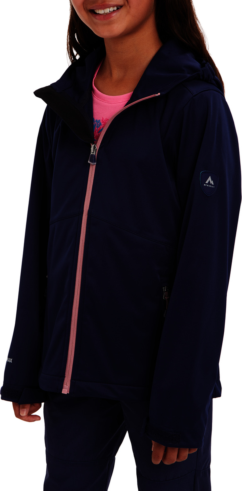 Mit der wärmeisolierenden und dennoch leichten Softshelljacke Bennet von McKINLEY sind naturbegeisterte Mädchen bestens gegen Wind, Kälte und Regen gewappnet. Dafür sorgt die wetterfeste und atmungsaktive VENTMAX-Technologie mit einer Wassersäule von 5.000 mm. Unverzichtbar für jedes Outdoor-Abenteuerist auch das MECHANICAL STRETCH-Material für ausgezeichnete Bewegungsfreiheit in alle Richtungen. Die Jacke mit angeschnittener Kapuze, Kinnschutz und praktischen Reißverschlusstaschen lässt sich am Saum und an den Ärmelabschlüssen individuell verstellen.